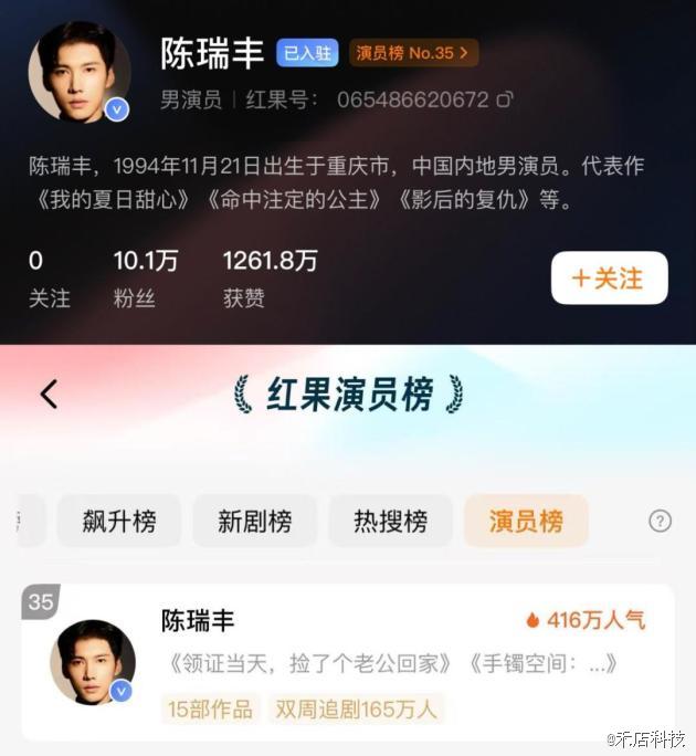 近日,一部言情短剧《领证当天,捡了个老公回家》(以下简称“《捡个老公》”)的红果热度值突破 7000 万,登上平台热播榜 TOP 4 ,热搜榜 TOP 2,飙升榜 TOP 2,新剧榜 TOP 3。剧中穆燕森的扮演者陈瑞丰凭借其抢眼的大长腿、骨节分明的手、精致的五官,再加上细腻的演技,冲进红果演员榜第 35 位,粉丝量突破 10w+,成功走进大众视野。